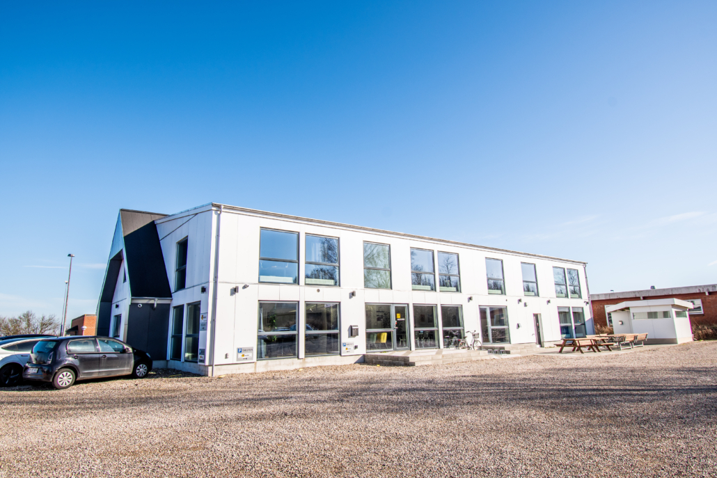 Vi har køkken og kantine, flere mødelokaler og god udenomsplads.